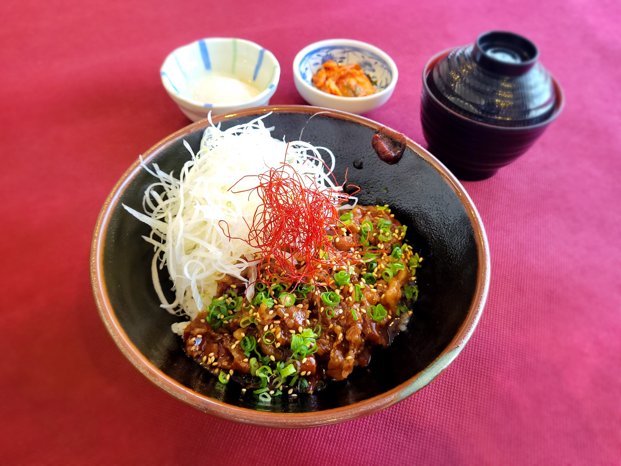 温泉玉子、キムチ付き。